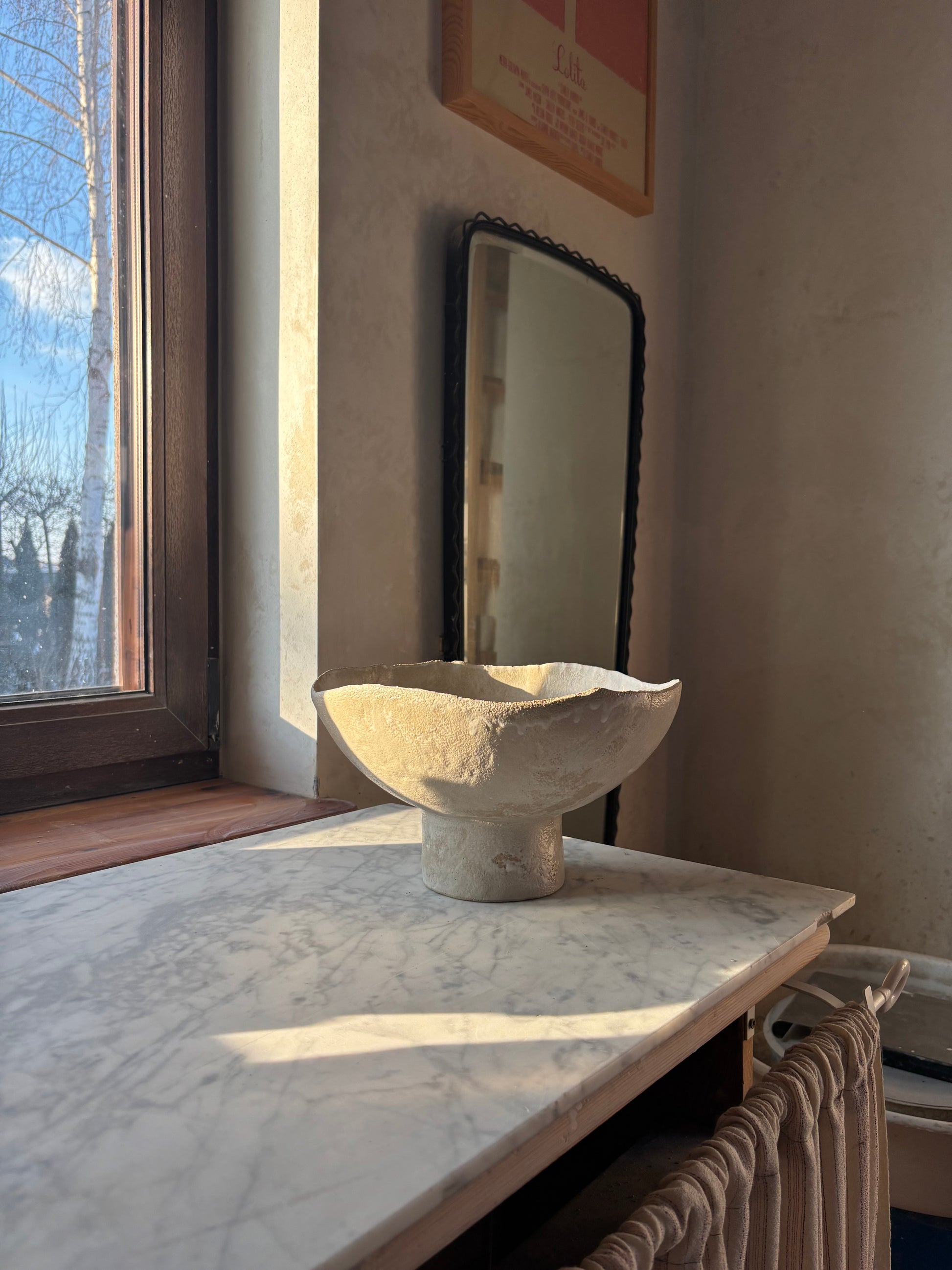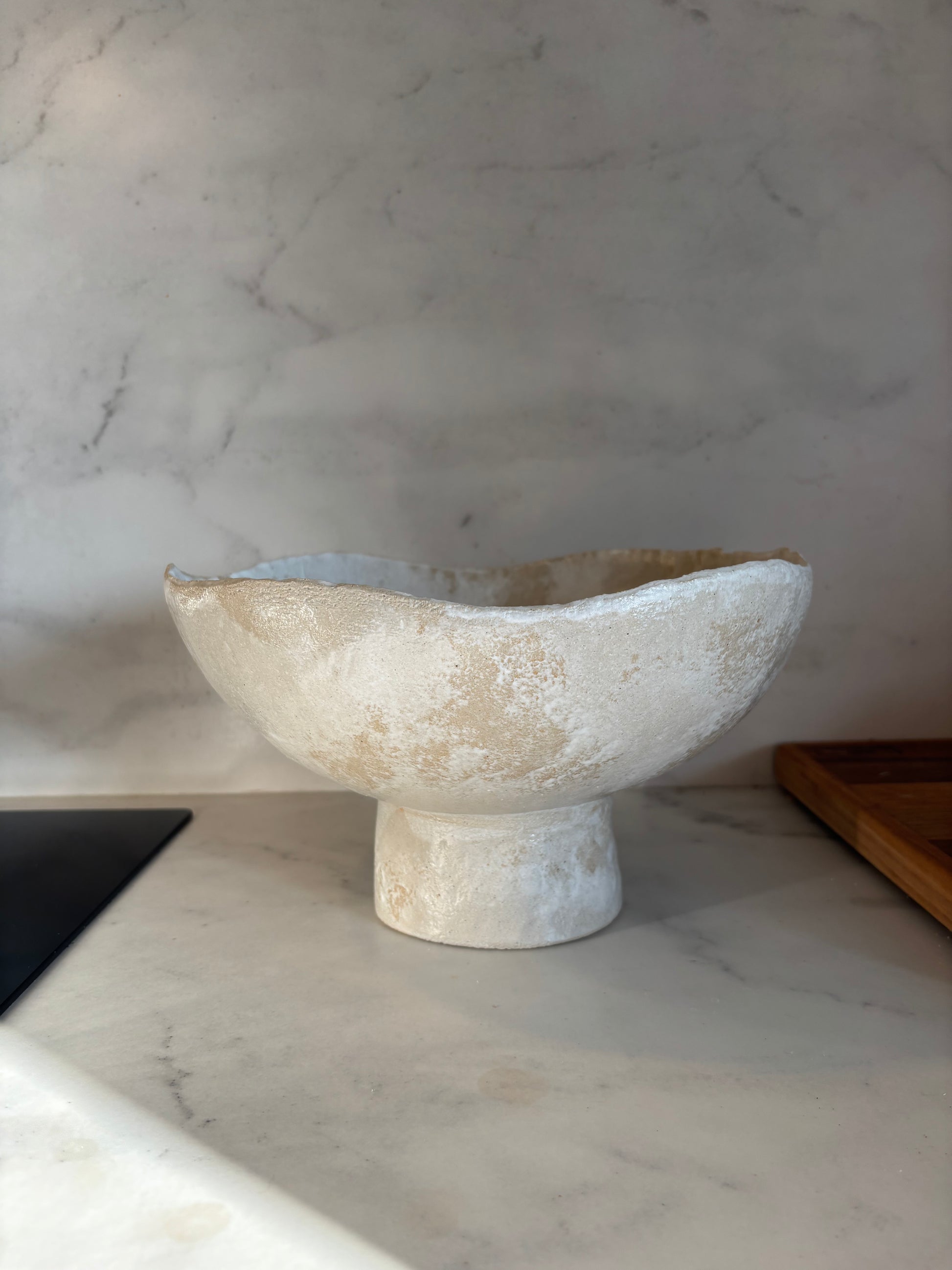 Ceramiczna Okrągła Misa na Cokole XXL Rustic White