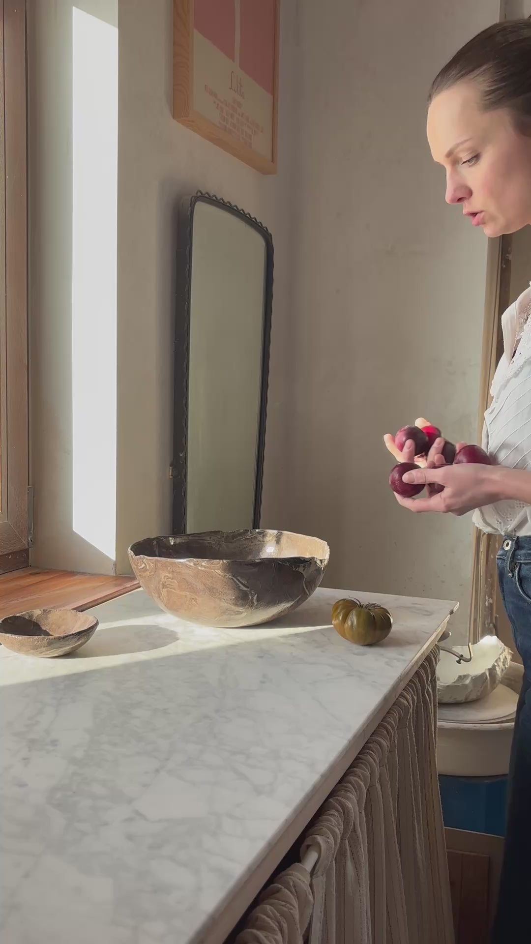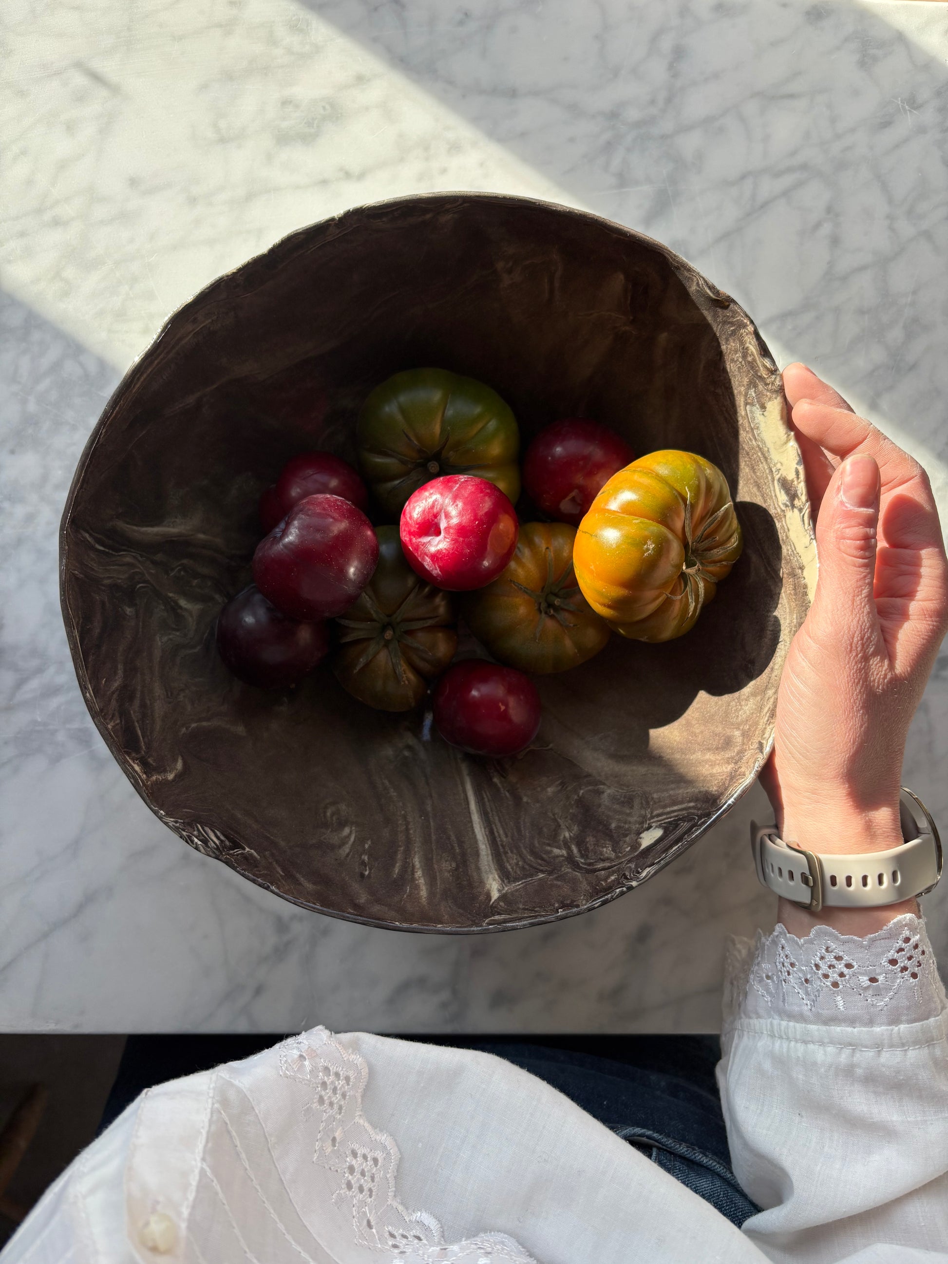 Ceramiczna unikatowa misa w stylu modern farmhouse, idealna na owoce, sałaty, przekąski, lub jako widowiskowy element dekoracyjny przestrzeni.