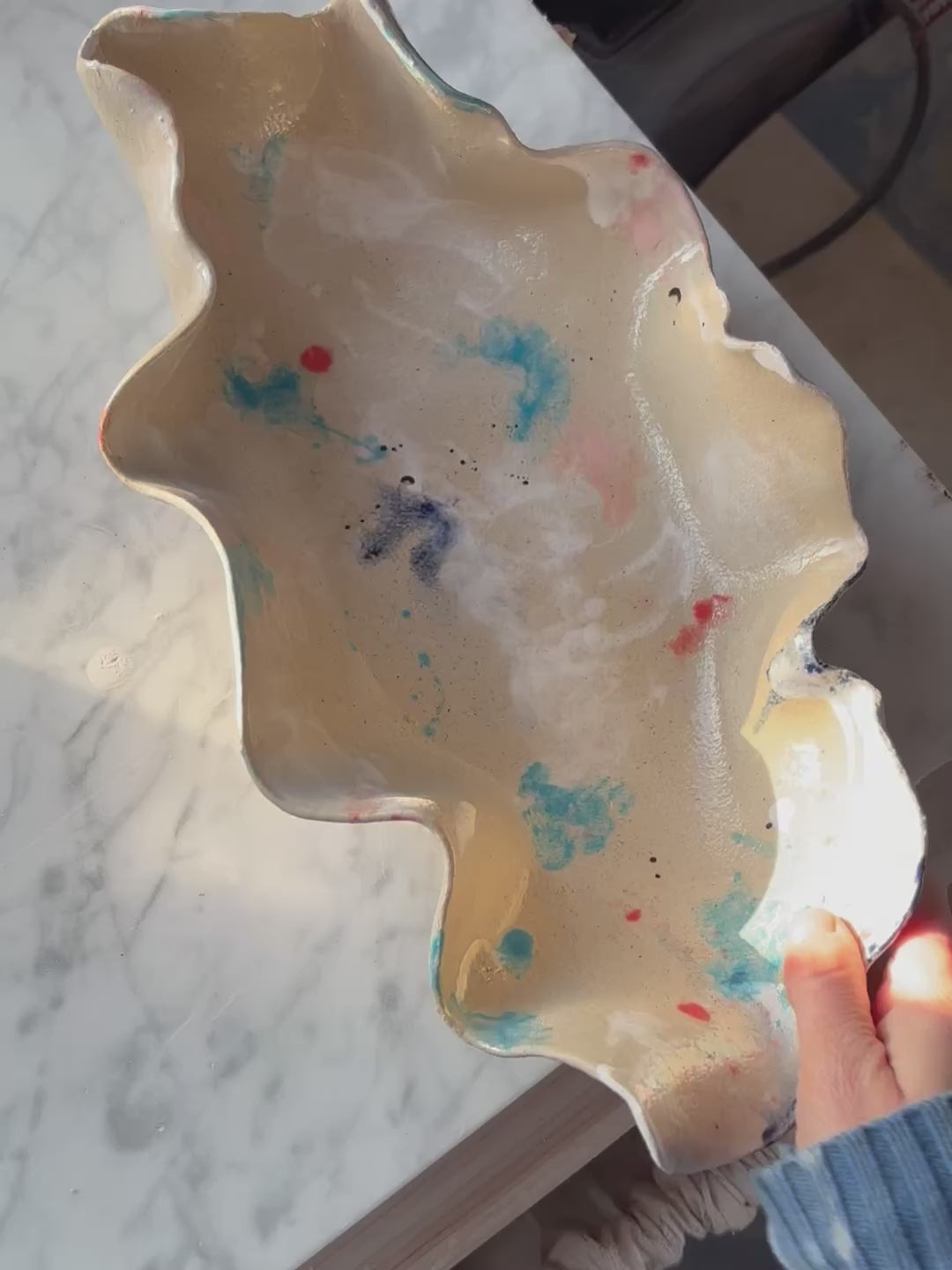 Ceramiczna, unikatowa, ręcznie stworzona patera w kształcie ostrygi z autorskiej serii "Paint on Ceramics Like on Canvas".