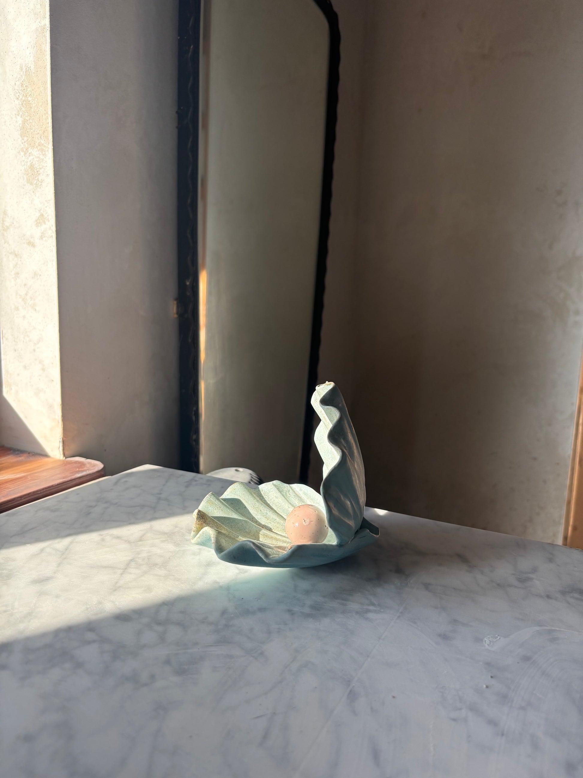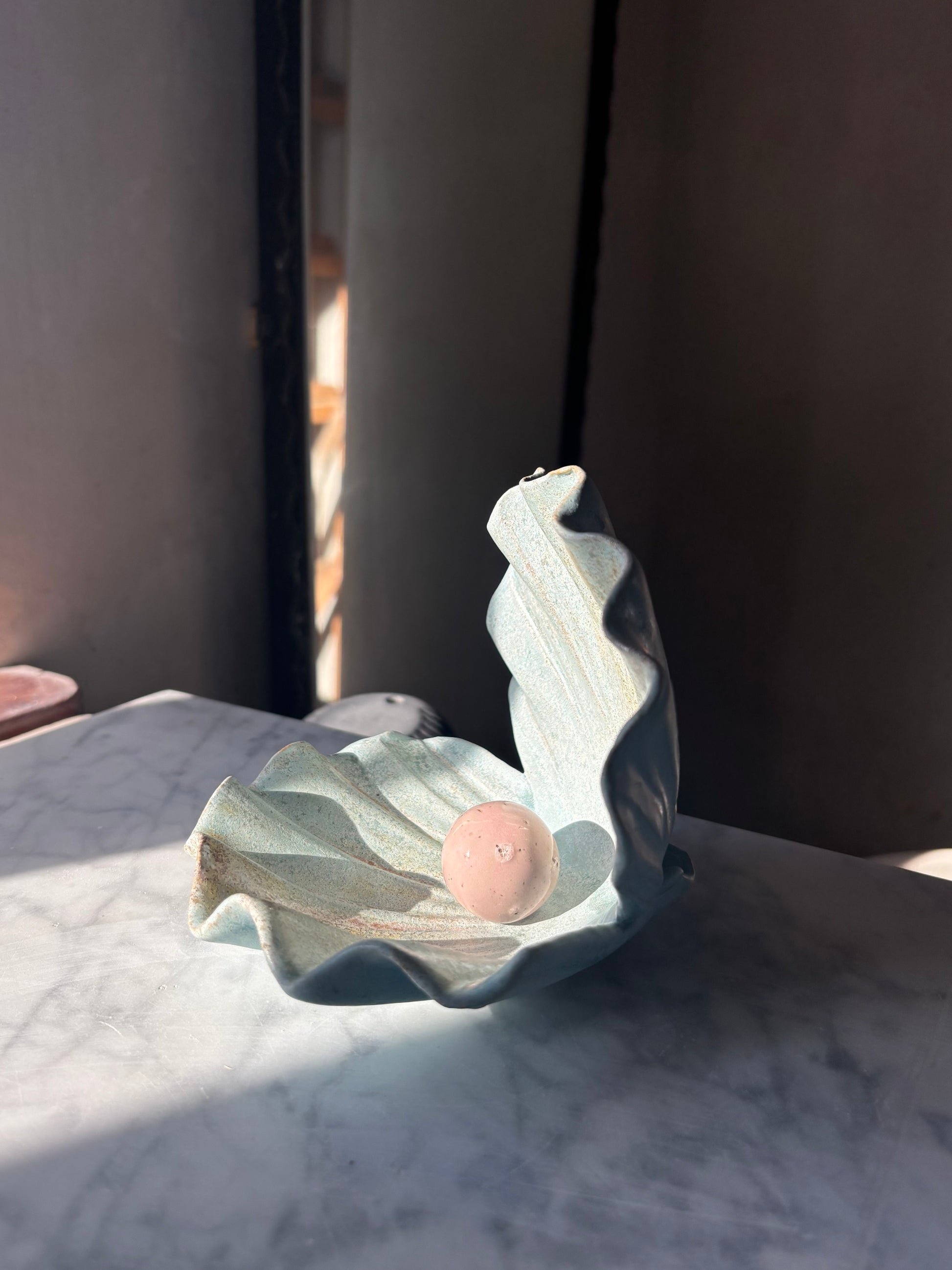 Autorska ceramiczna podstawka na drobiazgi w kształcie otwartej muszli. Idealna na biżuterię, palo santo, kryształy, przekąski lub ukochane drobiazgi. Muszla jest stworzona przez Moni, założycielkę marki Maison Fragile. Każda jest lepiona i szkliwiona bez użycia form, co sprawia, że każdy egzemplarz jest unikatowy.