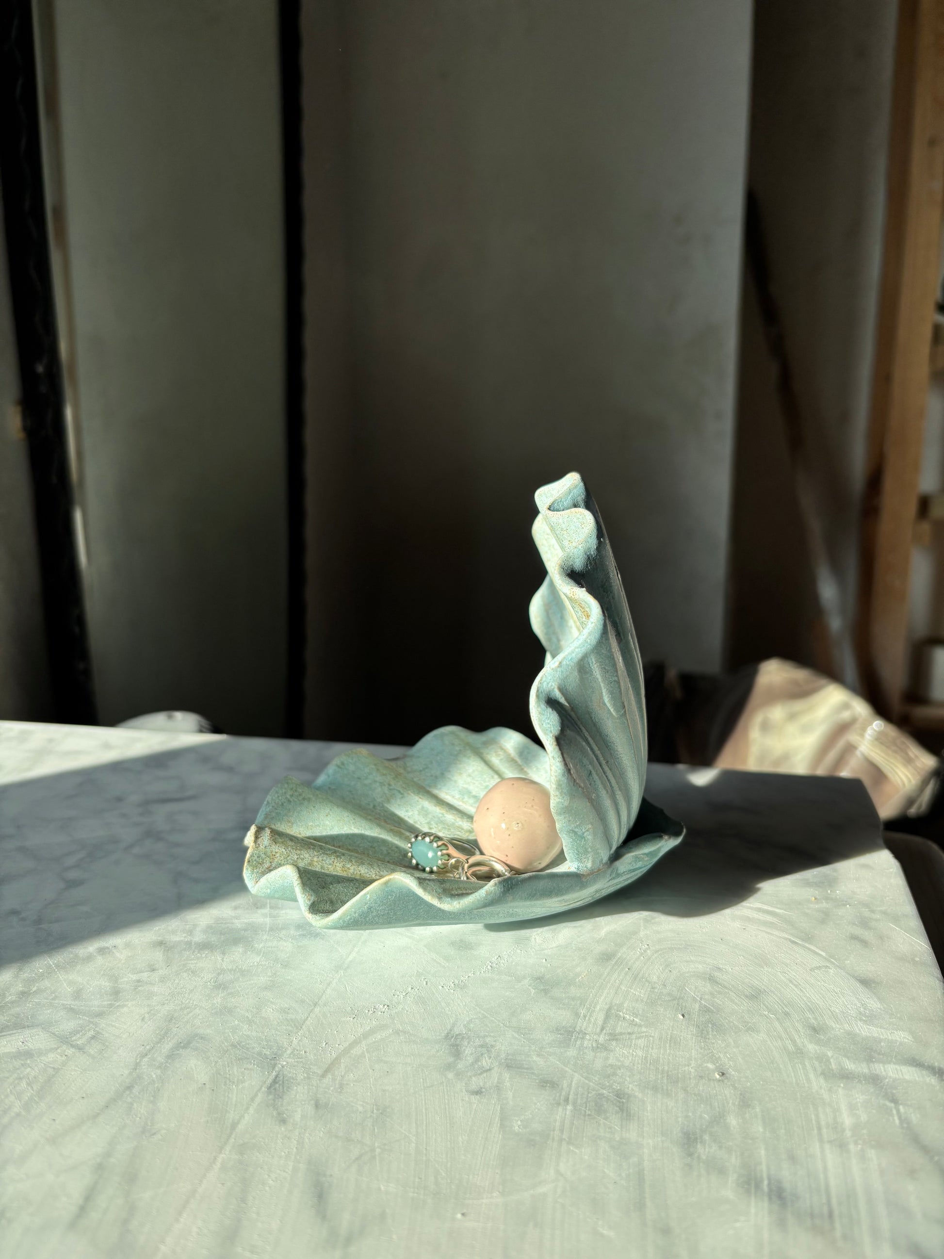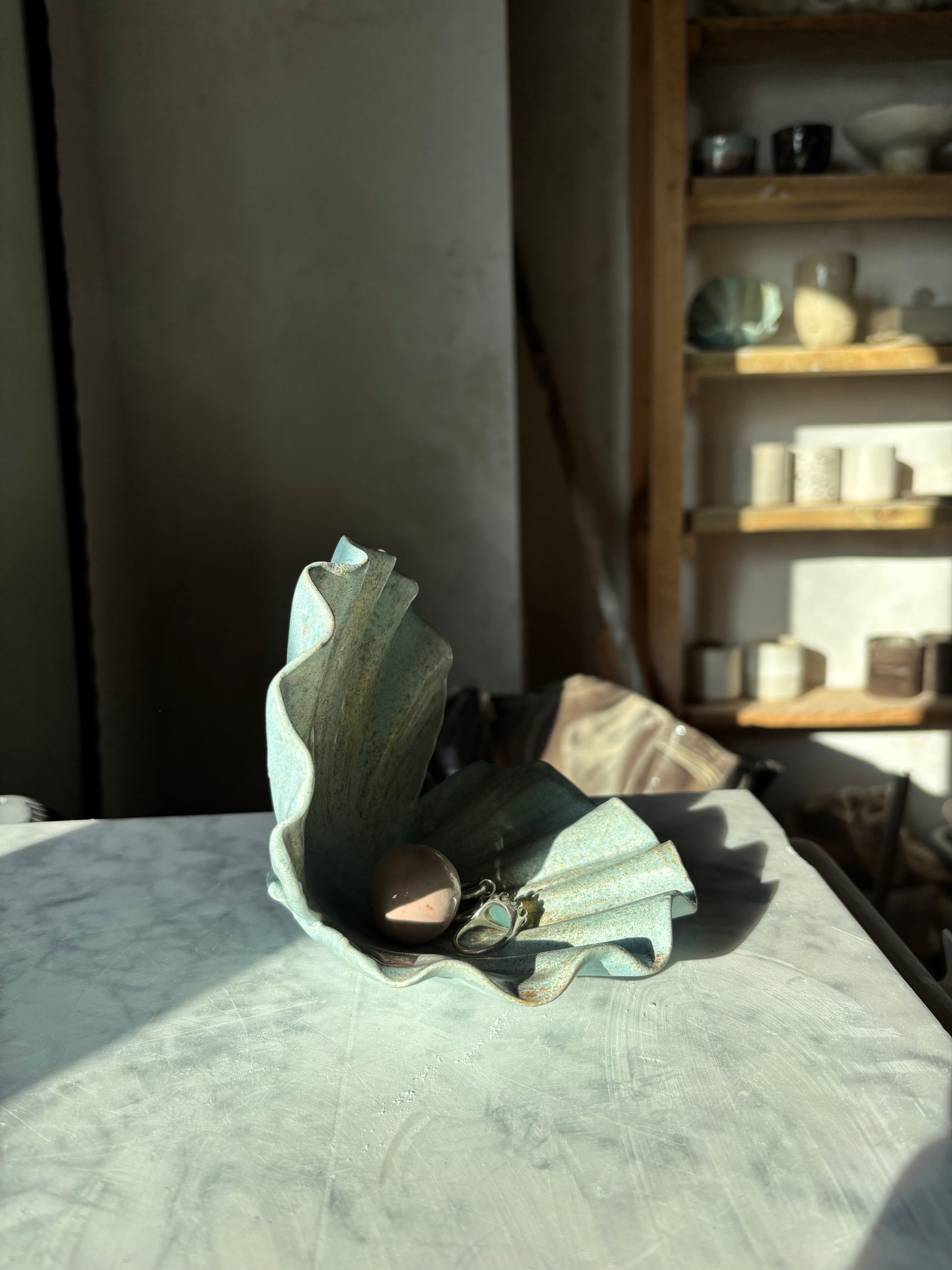 Ceramic plate in seashell shape. Perfect for keeping your jewels or your favourite treasures.