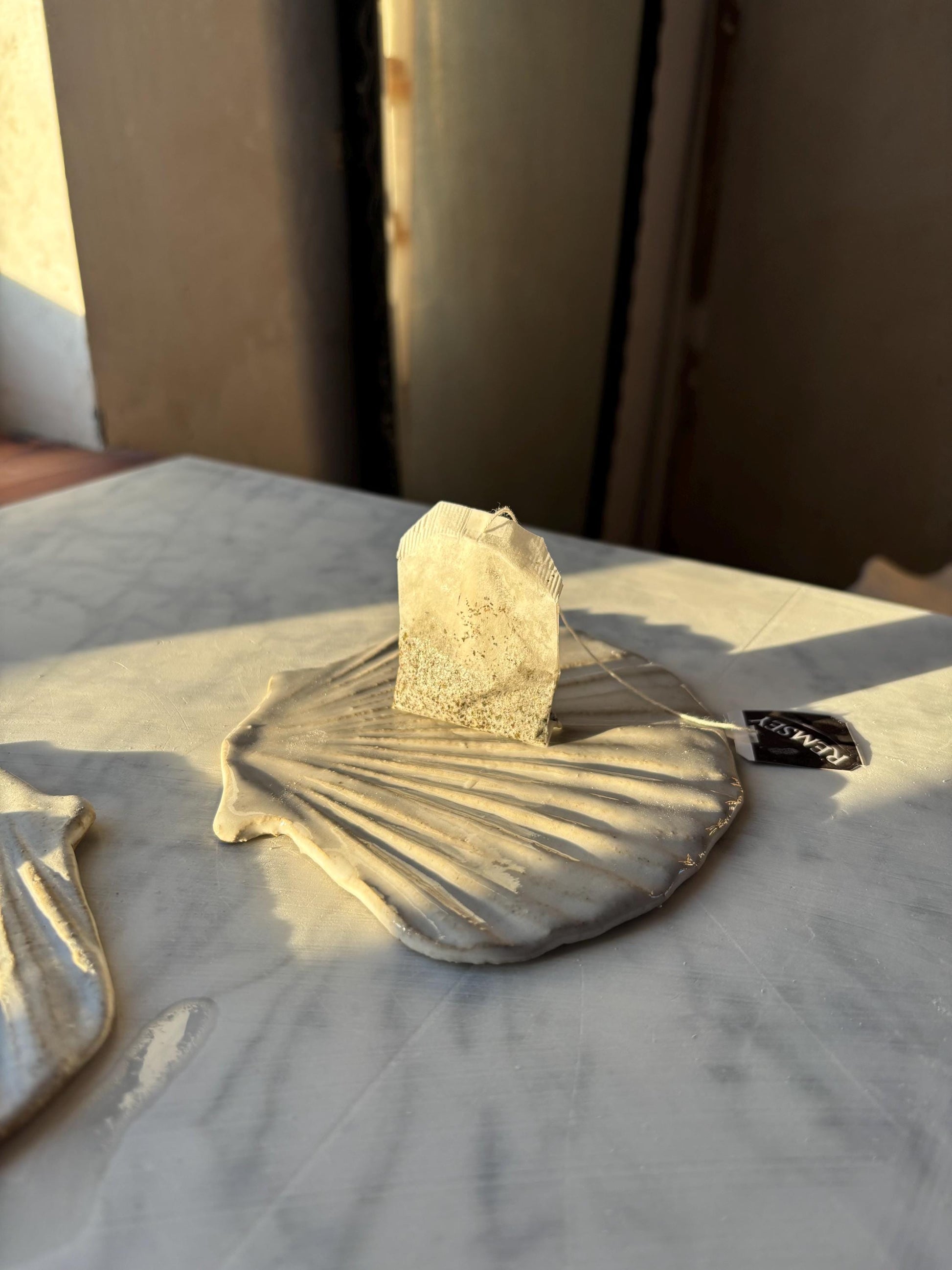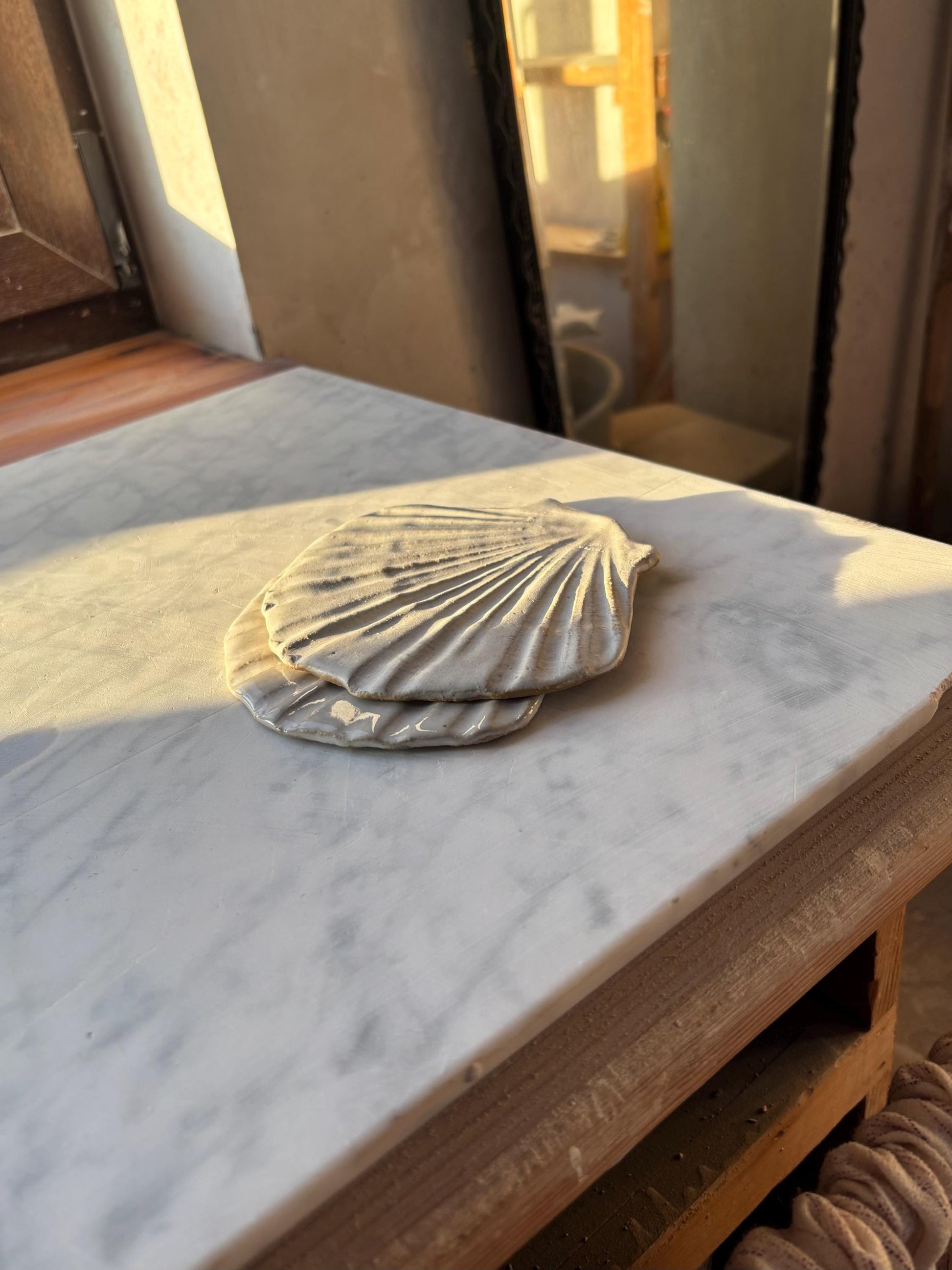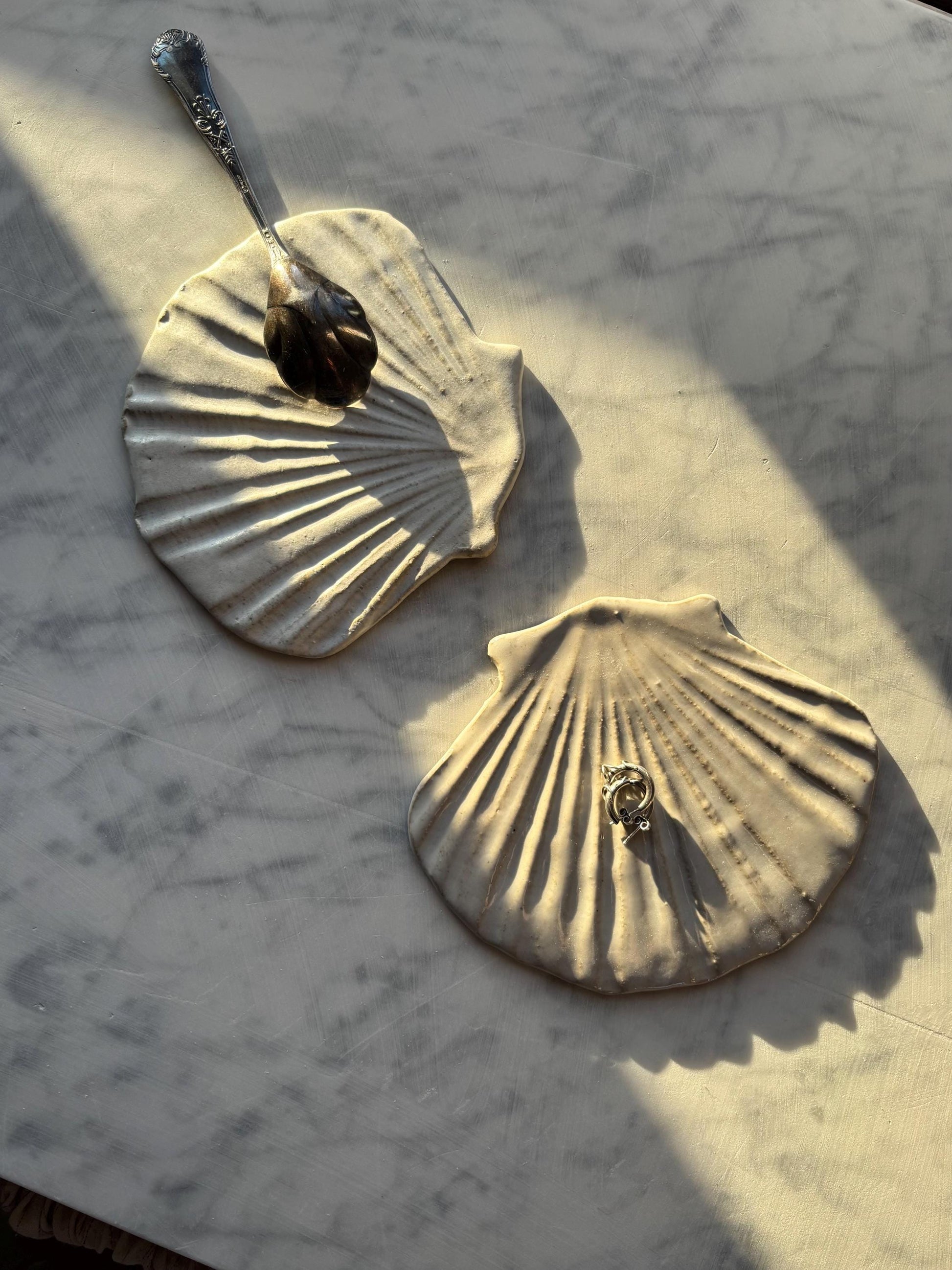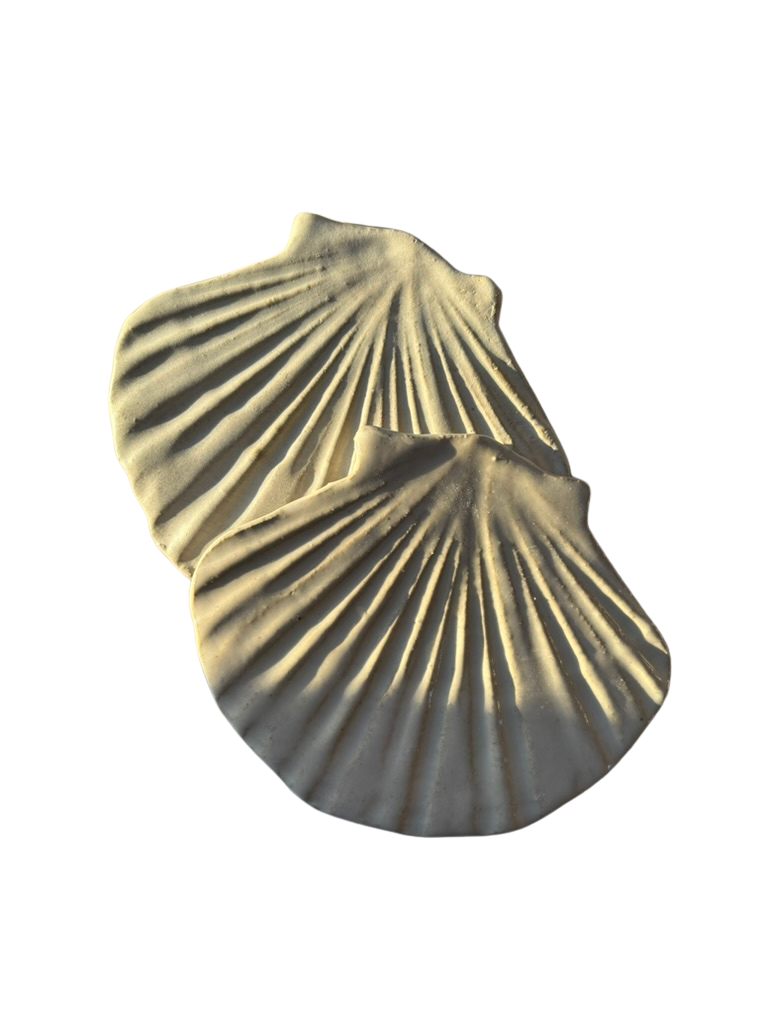 Zestaw 2 ceramicznych płaskich muszli, idealnych jako podstawki na blacie kuchennym podczas gotowania, lub też na biżuterię, palo santo, lub ukochane drobiazgi.
